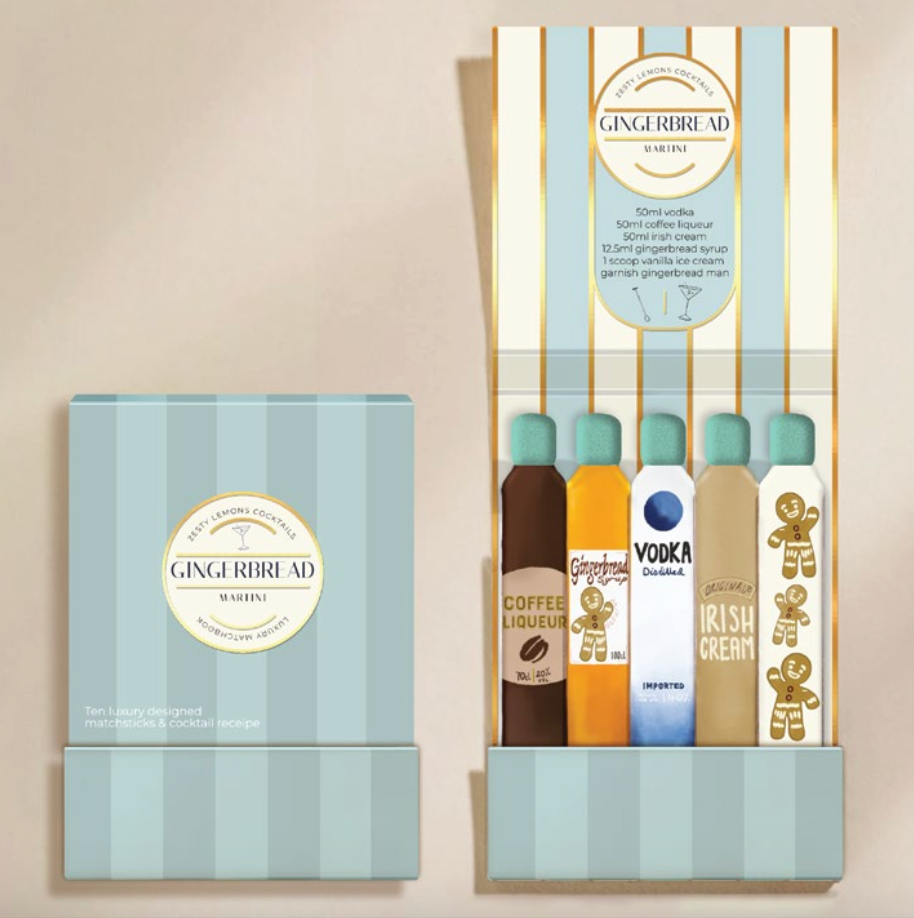 This clever matchbook is both a visual treat and a festive recipe card. Each hand-illustrated matchstick features an ingredient for a sweet Gingerbread Martini - with the full recipe included inside.