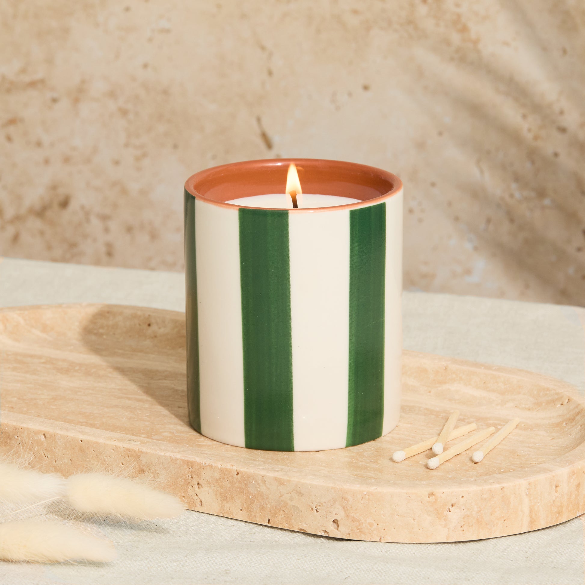 Marrakesh: Olive Striped Candle - Oud & Leather