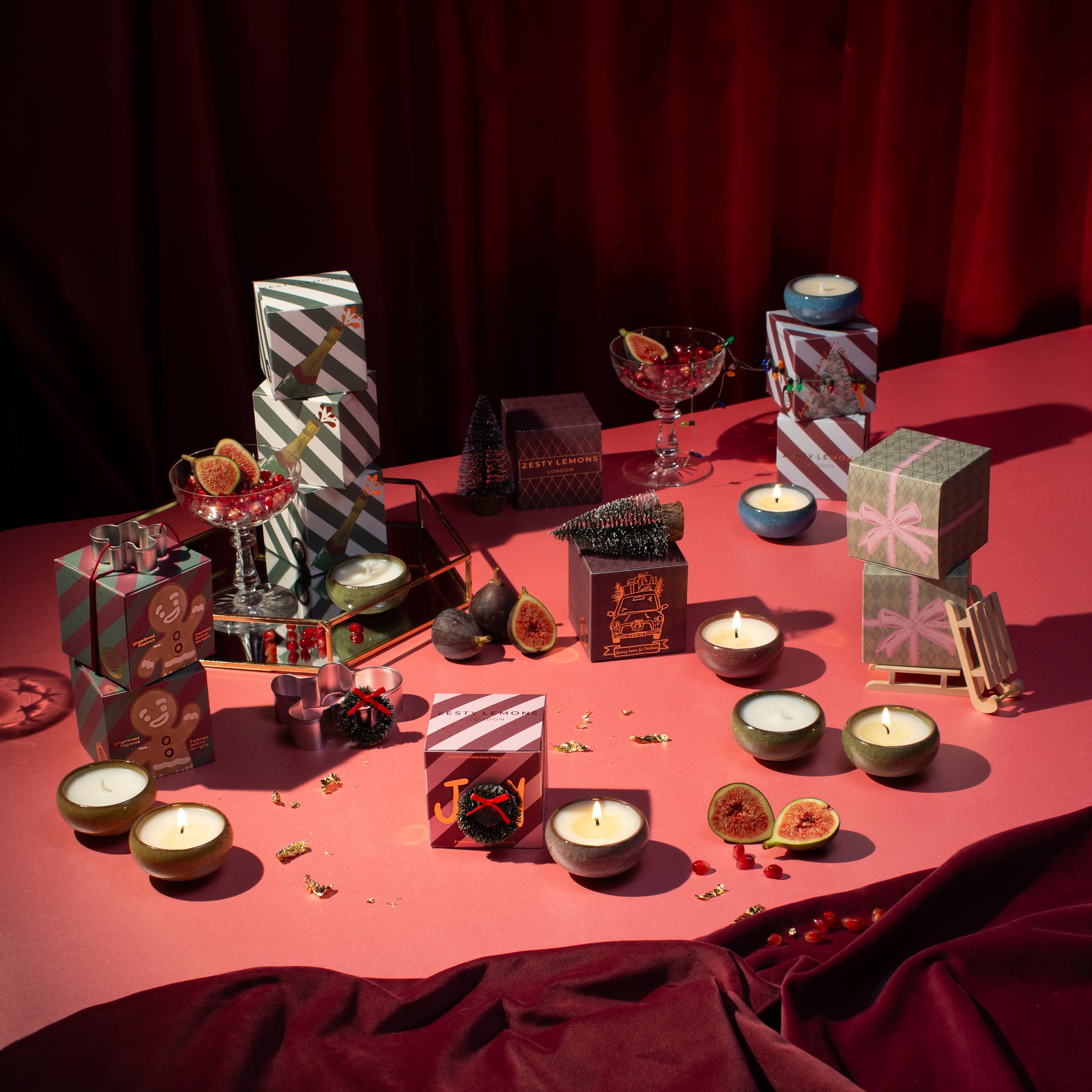 Each box contains two of our best-selling ceramic tea light vessels, filled with a cosy seasonal scent and designed to be repurposed long after the wax is gone. Presented in a playful 3D Christmas-themed gift box, containing artist illustrations and a wooden sleigh decoration, it’s a charming keepsake in itself - no wrapping required.